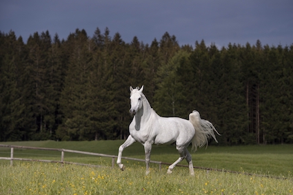 Die Passage kommt als Imponiergehabe des Hengstes in freier Natur vor, hier gezeigt von Vollblutaraber-Hengst WM Safi im Besitz des HLG Marbach.))