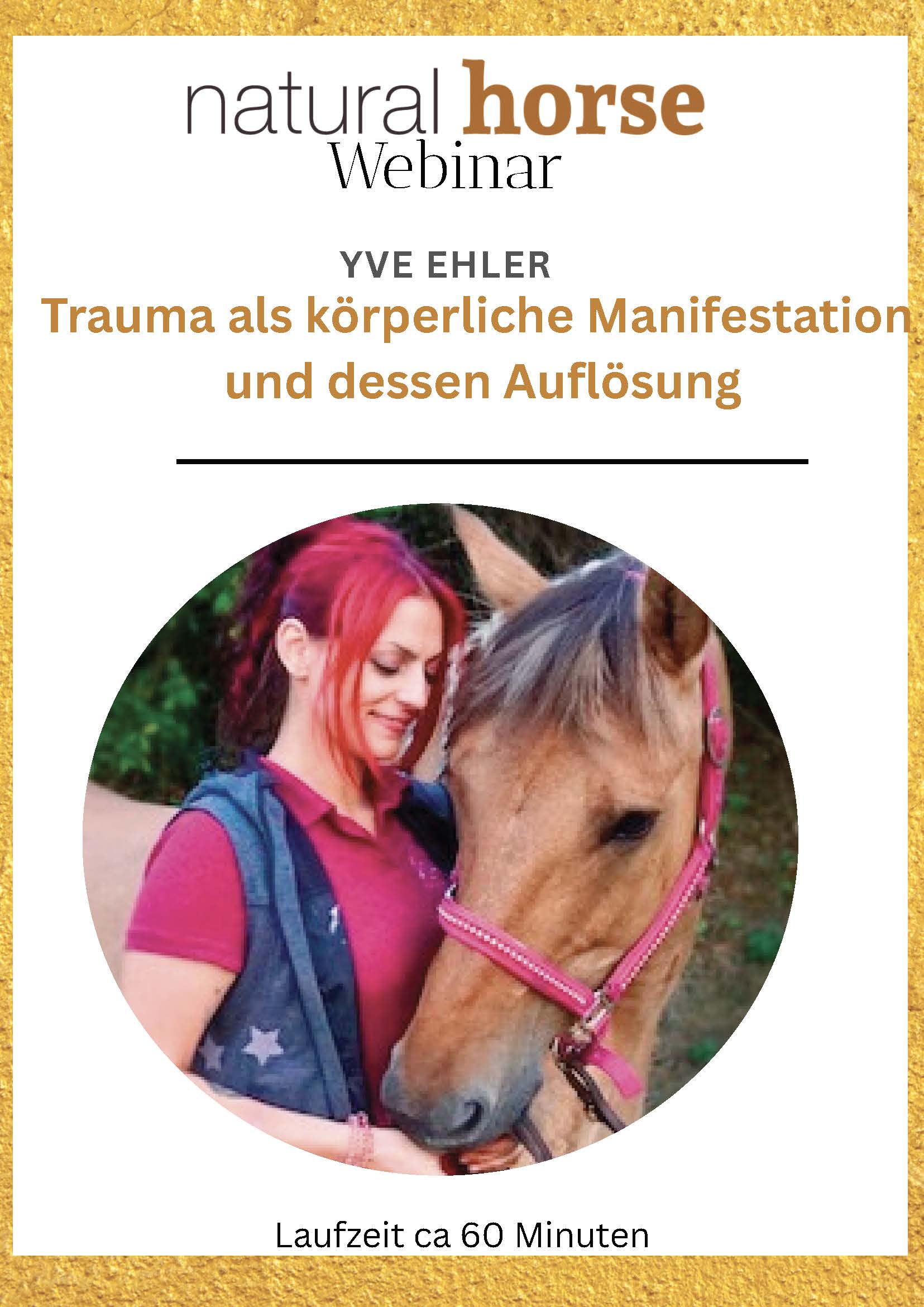 Yve Ehler, spezialisierte Trauma-Pferdeosteopathin, Mitbegründerin der Gerittenen Osteopathie® und langjährige Autorin im Natural Horse Magazin, nimmt euch am im 143-minütigen Webinar mit auf diese sensible Reise: